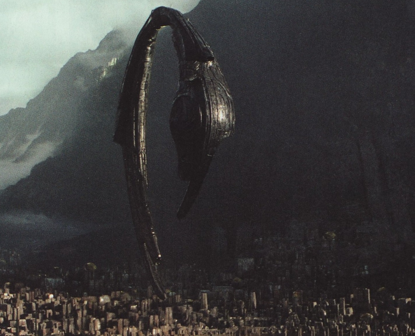 Below the ships is some kind of city, obviously not populated by humans but by Engineers (the tall muscly beings from Prometheus). I love how all of these images appear so awesome...in the true sense of the word. In other words, they inspire "awe" in me because they don't look like anything that I've ever seen before.