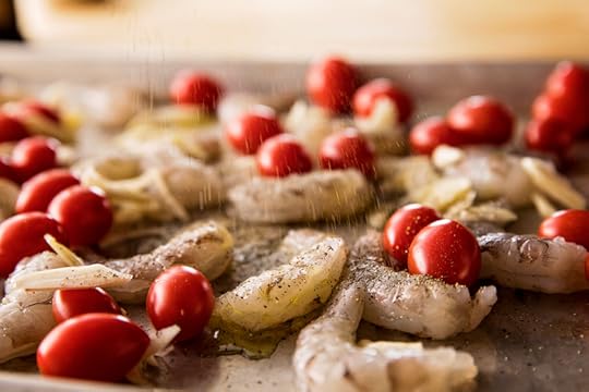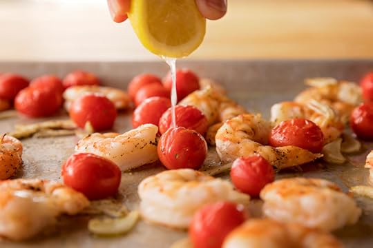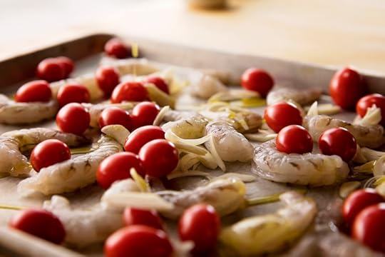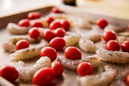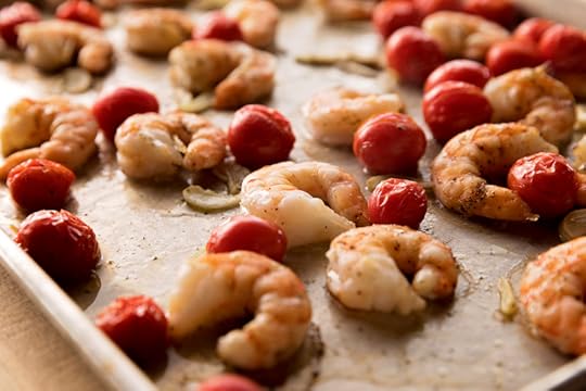 You can use whatever size shrimp you can get your hands on! Just scatter them all over a sheet pan with some cherry (or grape) tomatoes. Yellow cherry tomatoes would be gorgeous, too!