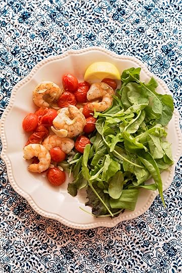 This is hardly a recipe at all, it’s just so simple and easy. And that’s exactly why I wanted to post it here! It’s just a lovely pan of shrimp and tomatoes, cooked in the oven until the tomatoes just start to burst, and it can be served with bread, pasta, or just a simple salad.