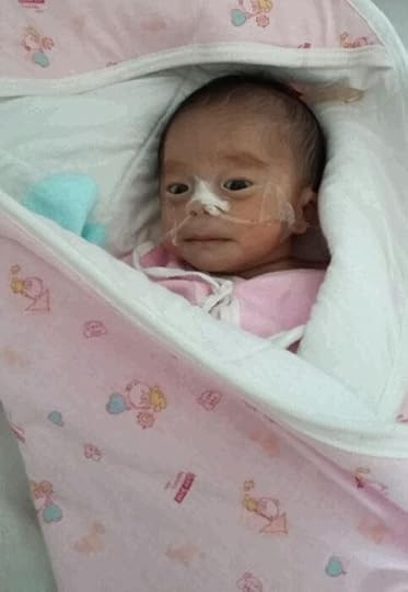 After surgery, I was allowed back into ICU, to be with my baby, and in the bed next to Ruby in that Chinese ICU, a tiny six day old baby lay.