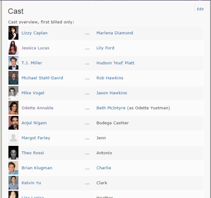 We pretty much never even see T.J. Miller; we mostly hear him as he is the evening's cinematographer. Keep in mind, this was well before he was whacked in Transformers - Age of Extinction (2014). So, a lot happened for T.J. in the intervening six years.