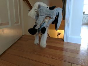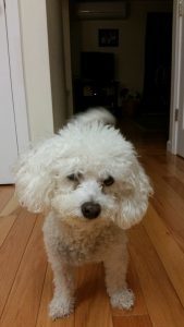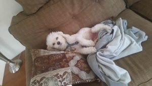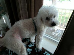 The echoes of his jingling harness and clicking claws will be in this house for a long time. The faint ghost of his white furred body nestled into the couch or perched on the back of his favorite chair. Those images will be there, though he will not.