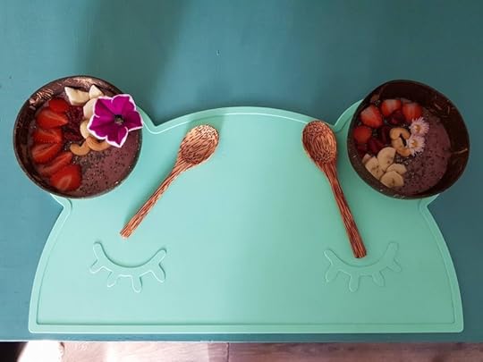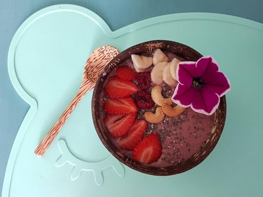 Ma tunnen lihtsalt survet elu lõpuni smuutisid teha, sest Ave saatis mulle ägedad kookospähkli koorest kausid ja kookoslusikad, nii et olla vähegi endast lugupidav instagrammer, tuleb ju sellised iludused kohe kasutusse panna. Ütlen kohe ära, et Mari sõi kaks ampsu ja siis läks võttis ohates jäätist. Ma ei tea, võin-olla ei ole ma lihtsalt nii hea smuutitegija, kuigi sisse sai maasikat, kirssi, vaarikat, banaani, spinatit, mett, pähkleid, chia seemneid ja üks mürgine lill, mille ma panin sinna vaid kaunistuseks :D