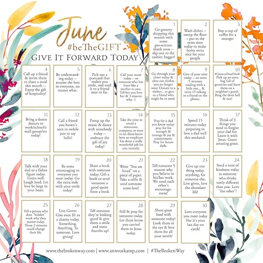 We could all together kinda start a little movement of Giving It Forward Today, choosing to #BeTheGIFT, living broken & given like bread out into a world down right hungry for love right now.
