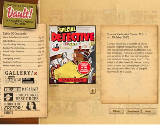 According to a recent Vancouver Sun story the Canadian market for detective magazines came to an end when “moral outrage led to a 1949 Canadian law banning pictorial depictions of the commission of crimes real or fictitious,” sucking all the fun from the articles.
