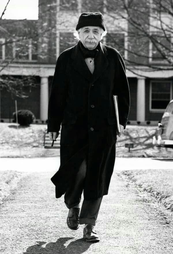 My friend Tammy sent me an article from the BBC titled “What you can learn from Einstein’s quirky habits,” subtitled “More than 10 hours of sleep and no socks – could this be the secret to thinking like a genius?” - To which Betteridge’s law of headlines (and I suppose subtitles) surely applies: Any headline that ends in a question mark can be answered by the word no. It was one of those “geniuses do the darnedest things” type article, but it was sent to me because of old man Einstein’s walking habits. This is him in Princeton: