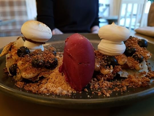 Magustoidu ajaks oli kõht juba jube täis ja ma ei tea, kas asi oli selles, või polnudki meie valitud magustoit kõige parem. Jäätis oli hea, seda ma natsa sõin, aga see ülejäänu oli kuidagi nätske ja vintske ja imelikul kombel kalahaisuga :D Ma lausa küsisin teenindajalt, et kas see peabki kala järgi lõhnama, ta nuustas ja ütles, et eiiiii, tavaliselt see küll nii ei lõhna :D Et siis jah, ma ei tea, ei tihka soovitada ka.