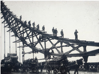 In some cases, like in Newcastle and the Glasgow City Archives, lists and documents have survived. The latter holds the records of William Arrol’s staff, providing a rich source of personal stories, work records and social history. It is because of these records that we now know the names of some of the riveting gangs; the teams of men and boys responsible for hammering the millions of rivets into place that hold the bridge's structure together. These gangs were often made up of families who worked in tandem on site. One such family were the Heaneys: father John, a riveter, and his sons, William, John and Edward.