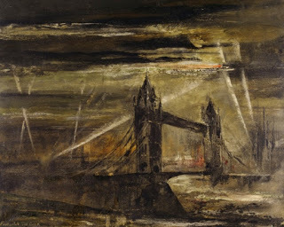 The Frederick Cook painting ‘A Flying-bomb Over Tower Bridge’, which depicts the bridge in the midst of the Second World War. Following the war, the London cityscape seen from Tower Bridge was “near unrecognisable to modern eyes”, says Dirk Bennett. (IWM via Getty Images)