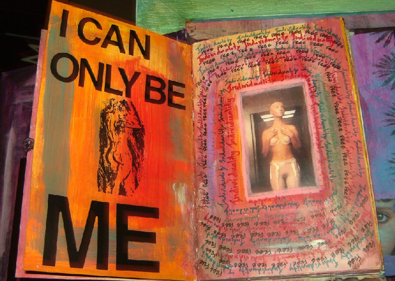 My artistic style is not about making pretty art, but instead, about honesty and what is going on in my life at the moment. I am drawn to journaling and collaging, as well as hands and hearts, which play a huge part in my art making.