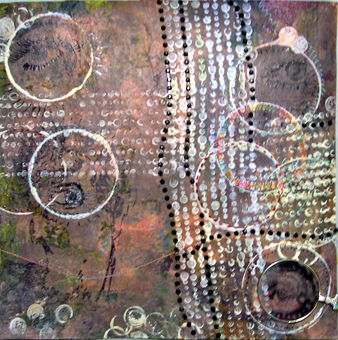 I am not sure that the artwork which I produce can be categorized as being directly connected to a particular artistic style. Most of my artwork falls into one of two distinct types: mixed media pieces on paper or museum board and wooden shadow boxes (which I call "scrapboxes"). I enjoy materials and processes that create an unusual juxtaposition of textures, patterns, colors and ideas, which sometimes lead to surprising visual connections. I like to think of my artwork as brief glimpses into the everyday details of a reality that may exist in another time or place. (Fall into Place).