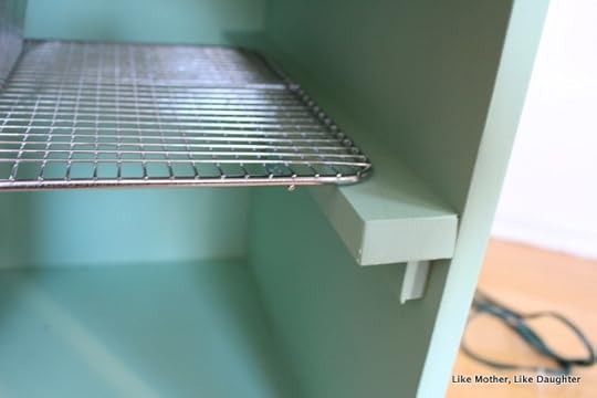 Put in a baker’s cooling rack (ordered from Amazon) as the oven shelf and affixed it to the wood with a staple gun.