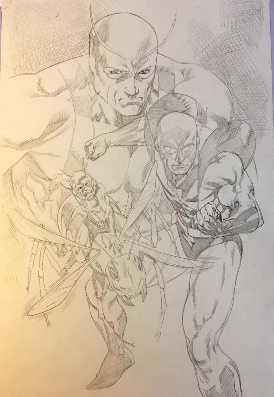 I had this commission request a very long time ago to do a montage piece of these 3 Hank Pym characters together. So here's the pencils. I'll post up the inks very soon!