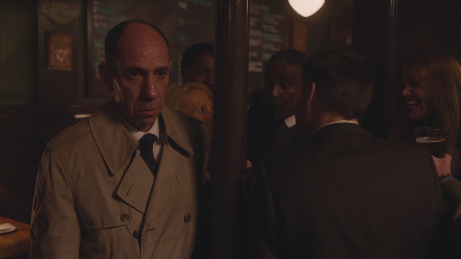 Why is Red performing supernatural magical acts for his underling, Richard Horne? Maybe as a form of intimidation? Who knows. But it does seem to unhinge and destabilize Richard even more than usual, especially as Red adds a little dig at the beginning by calling Richard "small time" and then again at the end of their bizarre interchange by calling Richard "kid." And repeating the insult again poignantly after Richard objected. And the very specific and gruesome threat of violence he promises Richard is very unnerving, even without the theatrics of the dime trick.