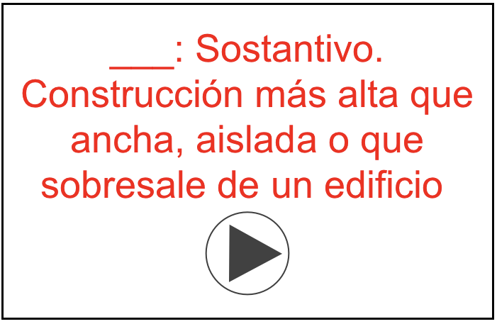 Definition: Sustantivo. Construcción más alta que ancha, aislada o que sobresale de un edificio.