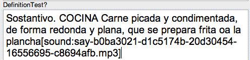 In the future, when you’re making flashcards, you can either make a bunch of flashcards normally and then repeat these same steps with them, or you can have AwesomeTTS create recordings on the fly. To do that, click once AFTER whatever text you’d like it to record: