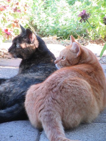 London That was it, we thought.  After all, we were getting older. But after my husband retired from teaching, we found a kitten in our back yard and named her Zoie Joy.  Then a pregnant stray made her way to us.  We nursed Halo through pregnancy and delivery of 3 kittens. We found homes for 2 but included Halo and her first born, Paddy, into our family.  I unexpectedly lost Ebbie my soulmate cat to heart disease during that time.  Bonnie and Clyde
