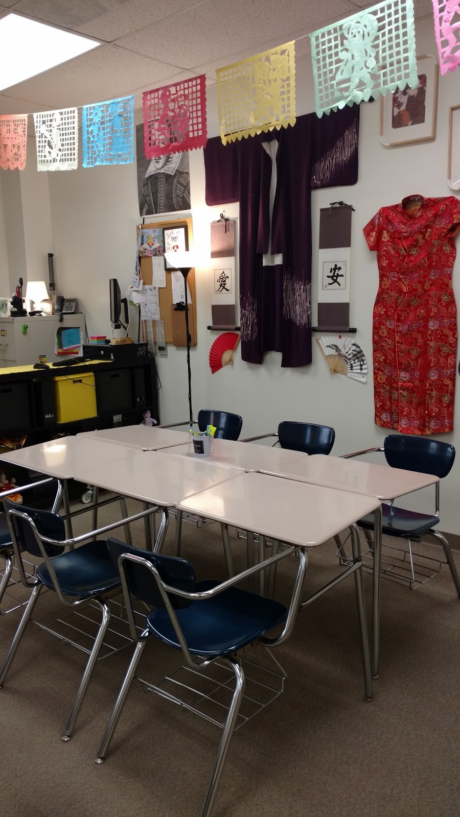 Over the years, I have added new pieces to my classroom space – a bench here, some pillows, a stool, a couch there – to accommodate the needs of my learners. My classroom now features a variety of different spaces. There is a reading nook with a couple of couches, pillows, a rug, and chair situated next to my bookshelves for a comfortable place to read. There are two desks facing one another near my back window, a perfect spot for a one-on-one conference. My teacher’s desk, a hacked Ikea bookcase on casters, is at the back of the room without a chair. It is a counter to hold my computer and teaching materials and to host informal conversations, but I don’t spend much time there, so there is no need for a chair. I have a combination of tables and chairs, traditional desks, comfortable benches, and pillows around the room which my students move between throughout our class period depending upon what task we are focused on. My classroom set-up has evolved over the last few years. In changing from traditional rows of desks which I started with, I honor the needs and stories of the students in my learning community, but my classroom also reflects my evolution in thinking about teaching. My teaching is less about me being at the front of the room and more focused on space for my students to collaborate. My room reflects that change.
