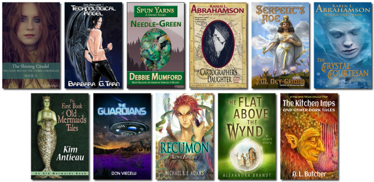 The Shining Citadel – A. L. Butcher Technological Angel – Barbara G. Tarn Needle-Green – Debbie Mumford The Cartographer's Daughter – Karen L. Abrahamson Serpent’s Foe – J.M. Ney-Grimm The Crystal Courtesan – Karen L. Abrahamson The First Book of Old Mermaids Tales – Kim Antieau The Guardians - Book 1 – Don Viecelli Love Apidae (A Recumon Story) – Michael R. E. Adams The Flat Above the Wynd – Alexandra Brandt
