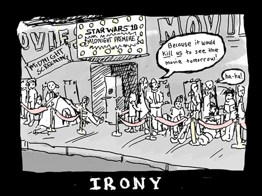 That is to say that an ironic person includes himself among the mocked, whereas a sarcastic person stands outside the situation in judgement. See how it might play out in the below scene involving a bunch of nerds camping outside of a movie theater: