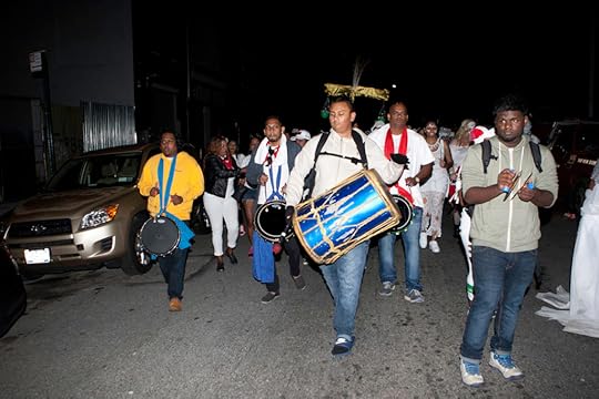 Image credit Dauwd El.While I heard reports of some renegade bands like a Haitian crew that sounded its way through Prospect Leffert Gardens, and of course Pagwah marched loudly and proudly the several blocks from its home base to the official parade route, once on Flatbush, the overwhelming police presence was a serious vibe killer. Electronic road signs flashing “Lower Music” and then “No Music” were anathema to an event that runs on rhythm, and by the time costumed and painted up revelers subjected themselves to the humiliating experience of a stop-and-frisk pat down on the one night of the year that was supposed to offer liberation from daily life in the city, many looked defeated. The crowds were vastly diminished from years past now that the sunrise no longer served as the climax after hours of street parties.