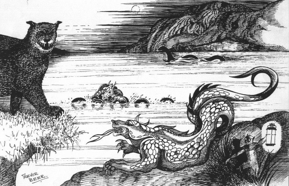 (Below) This is the colourised, publisher-edited version, focusing solely upon the dragons, that duly appeared in my book (© Trevor Beer/Dr Karl Shuker/Aurum Press)