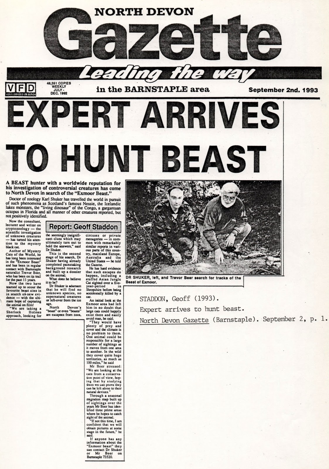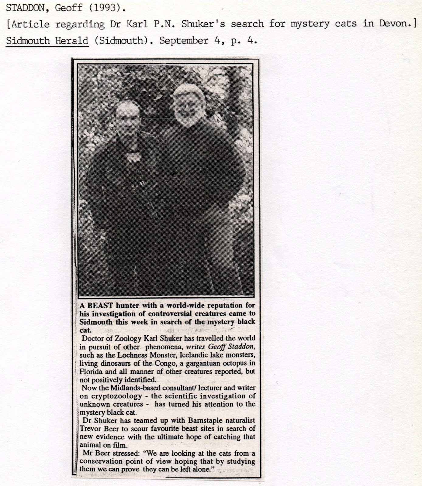 In June 2017, I was greatly saddened to lose one of my oldest and dearest friends in cryptozoology, when the award-winning Exmoor naturalist and veteran British mystery cat researcher Trevor Beer MBE, aged 80, passed away, following a short illness. Within the realm of cryptozoology, Trevor was well known and well respected in equal measure for his longstanding and outstanding Exmoor Beast investigations, his classic book on the subject, and his own significant, first-hand sightings of a very large black pantheresque cat on the moors, but in the wider world of Westcountry natural history he was an absolute colossus.