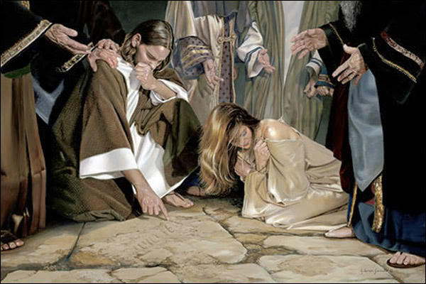 And the scribes and the Pharisees led a woman who was taken in adultery and standing her in their midst saying to Him, "Teacher, this woman was caught in the act of adultery: and in the Torah of Moses it is commanded for us to stone such as those. Therefore what do You Yourself say?" And they were saying this testing Him, so they could accuse Him. But Y'shua, bending down, wrote with His finger in the dirt. And as they were continuing to ask Him, He straightened up and said to them, "The one...