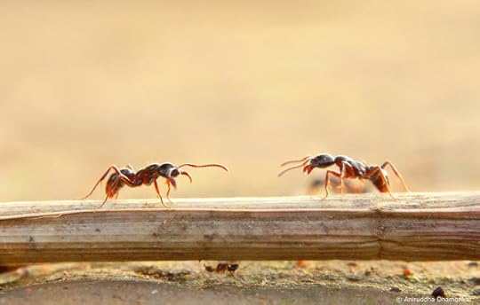 Shiva walked up to the edge of the mountain and stooped down. He first looked eastward then westward, and then the river beneath .The river looked beautiful. Shiva watched a column of dark red ants transport mud pebbles across the edge of the mountain. When He laid a clod of earth in their way, they strained to climb over it instead of skirting it. There’s so much to learn from this tiny creature, their fighting spirit, the greatest Lord thought.