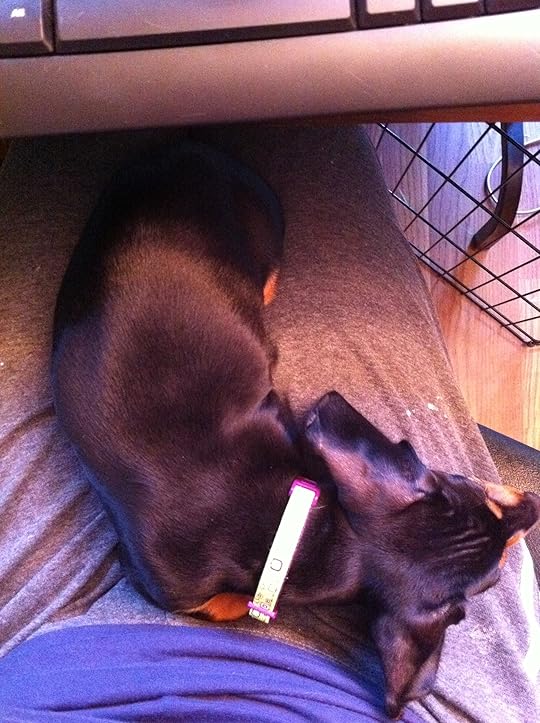 It is Saturday. I have not slept in in weeks and weeks and I don't mind at all. I am shocked at how much I love having this silly puppy- Otto Von Schmidt. He really is a wonderful dog, already learning and pretty obedient. Which is a big deal when I researched AFTER getting him that doxies are not a breed that care to listen to their owners much. Heh. Typical me. Leap first, look later. It works out. Most of the time. I am on my second marriage tho.