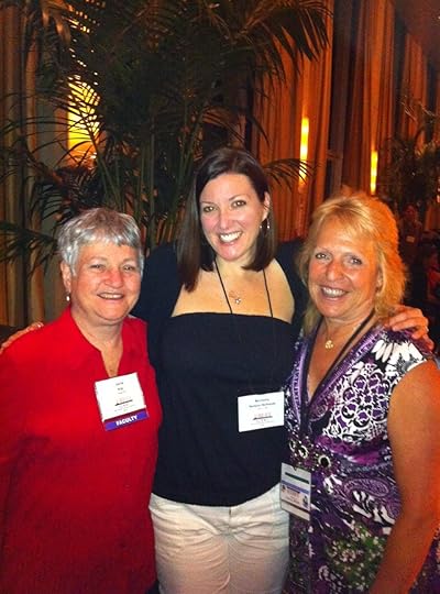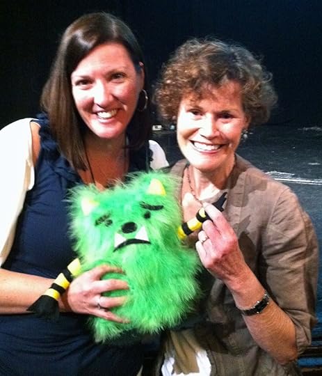 Here are some pics of me with some of those amazing people. Altho, Judy Blume probably is probably scared of me now and told people, don't let that crazy girl with that green monster near me again. See, there was a HUGE crowd around her (obviously) after her talk and finally they said she had to leave. Well, I NEEDED my pic with her! So I threw my monster at her, leaned in and shouted to my sister, "LIZ! TAKE THE PICTURE!!" She did. And I probably scared my childhood hero. LOL! But dude. Got the picture! WITH my monster! Score! My agent, Deborah Warren and another client of hers, Naomi. (can't remember her last name.)