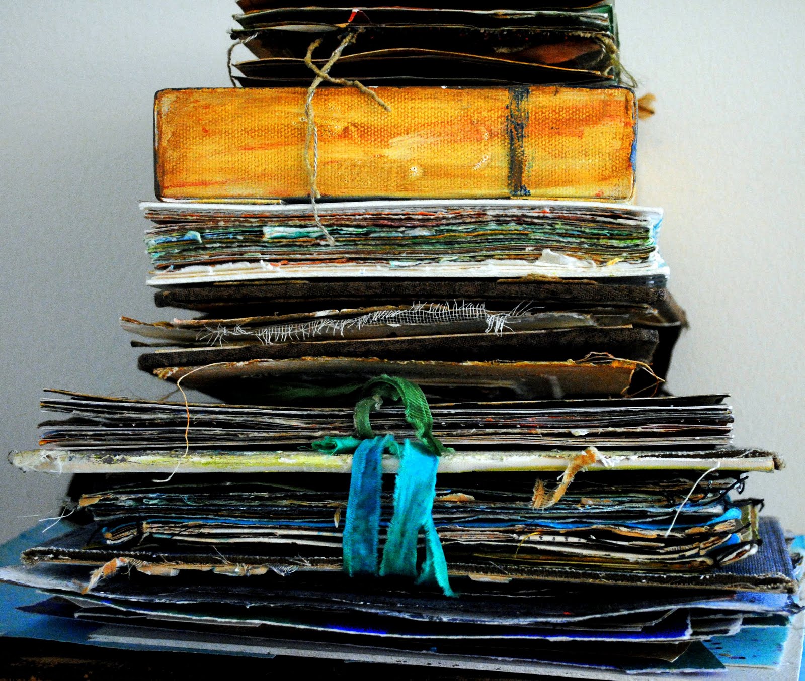 Stand tall, be proud, and join the list of artists and bloggers who are admitted stackoholics. Take a picture of your favorite stack or stacks, post to your own blog, and email the link to me so I can add you to the link list. And visit your fellow stackoholics for inspiration. Please check back here often as I will be updating this list continuously as more people post. The links are numbered so you can keep track of what you have seen.
