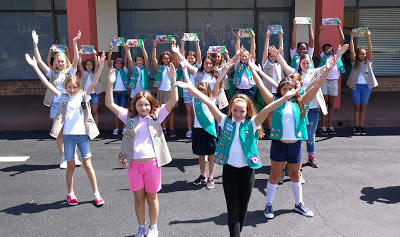 A surprise addition to this week's Mosaic Moments. The Citrus Singers have come up with another video, this one very much "off the cuff," as they wanted to coordinate with the Girl Scouts' current fund-raising campaign that will end in October. It's a parody of "These Are a Few of My Favorite Things" from The Sound of Music. No costumes, no studio with AC - just a whole day "street side" in the 90+ sun and heat following Irma's departure. (Ironically, hurricanes sweep all the moisture from the air, leaving days of bright sunshine behind.) The Hispanic couple (experienced performers) who were to play the roles of customers couldn't make it - their car wouldn't start. And when Susie (the director) still hadn't found the young man needed as another customer, the teenage deliveryman for a nearby pizza place was pressed into service, as were some of the girls' parents. My eldest granddaughter also appears as one of the "cool" customers, the one requesting food with "no calories." Anyway, you'll find a link below to another GS video, scripted by my daughter, with all three of my grandgirls performing.