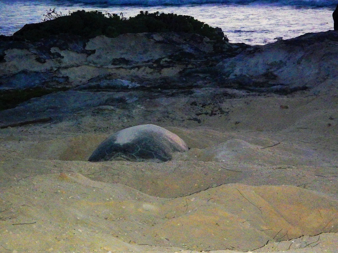 Mama turtle - digging, digging, digging.As we near our house I can see Lawrie standing in the street, waving frantically at me. “Hurry up!” He shouts quietly, trying not to wake up our neighbours.