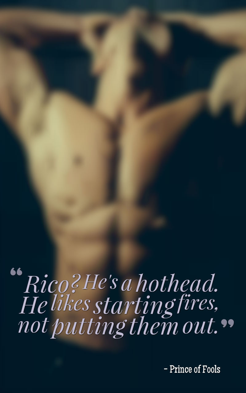 Without blinking, with his voice so flat and cold it sent a palpable shiver through each of them, Rico said, “I had the blood of a dozen grown men on my hands before I was old enough to enjoy my first female, because we never had the luxury of being children in our House. We grew up forced to fight our brothers to shine in our father’s eyes until able to turn that rage on our enemies . . . and we had plenty of rage, enough to burn down the world.