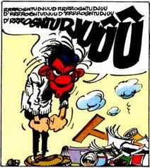 Some found more original ways. In Gaston Lagaffe, Franquin would write out the sounds – meaningless on paper, they would regain their full sense once said aloud. And you gotta love the red face.