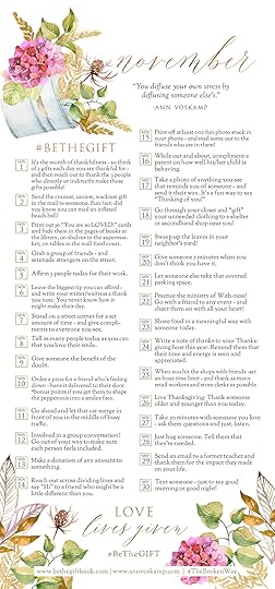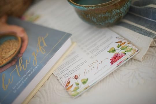 It also includes pages of perforated gift tags in the back to include with a meal dropped off for an ailing friend or an unexpected treat for a friendly neighbor — so you get to #beTheGIFT — and be part of changing the world — and your heart — right where you are.