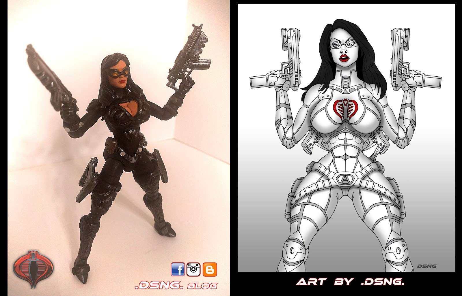 Baroness [Anastasia Cisarovna] is one of the sexiest female villains from the 80s. And I added some of my artwork, to show some of the inspiration that I was drawing from, in order to get the custom job done swiftly. There is another pic that inspired my artwork’s pose, which was done by a popular comic artist guy called Adam Hughes [You can search Google for “Adam Hughes Baroness” to see it].
