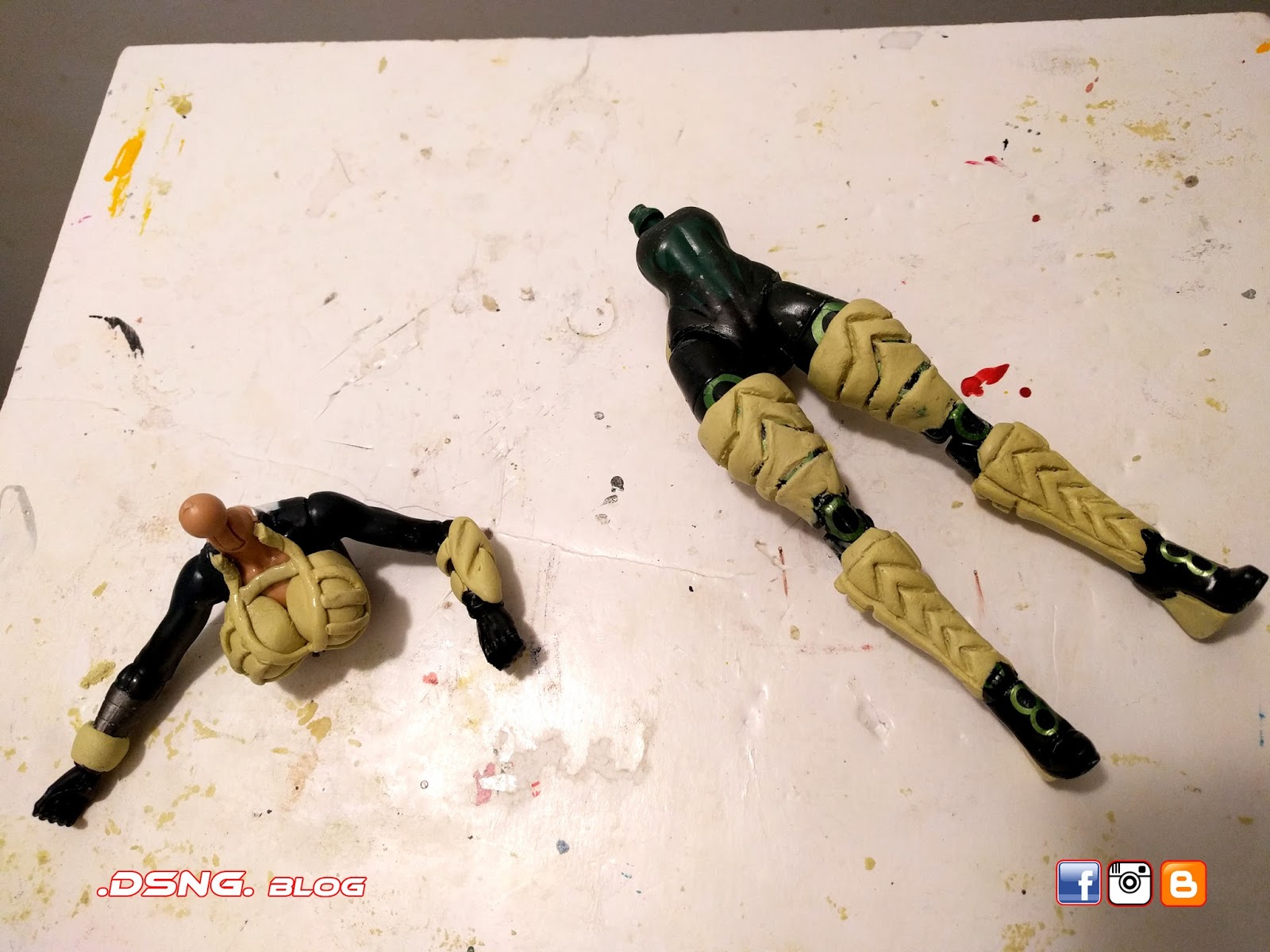 Some gemstone stickers were added to her costume, placed on her belt and her gauntlets, to give her that extra bling factor, since she is supposed to be very affluent in the cartoon series. And on her right hip she has a sculpted pouch adhered to her belt, while on her left hip she has some sculpted C4 explosives.