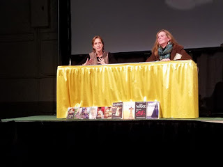 on panel at Equine Affaire. Photo courtesy of Rhonda LaneLaura and I spoke about the writing process, research, and the all-important "getting it right for the touch the horse world but don't inhabit it. This puts pressure on me to get my details dead straight or my horse-loving audience will kill me. Laura elaborated how the structure of good story mimics a Grand Prix course...successfully landing a climactic story requires knowing where your story is headed, making sure the approach is sound, and knowing how to overcome obstacles.