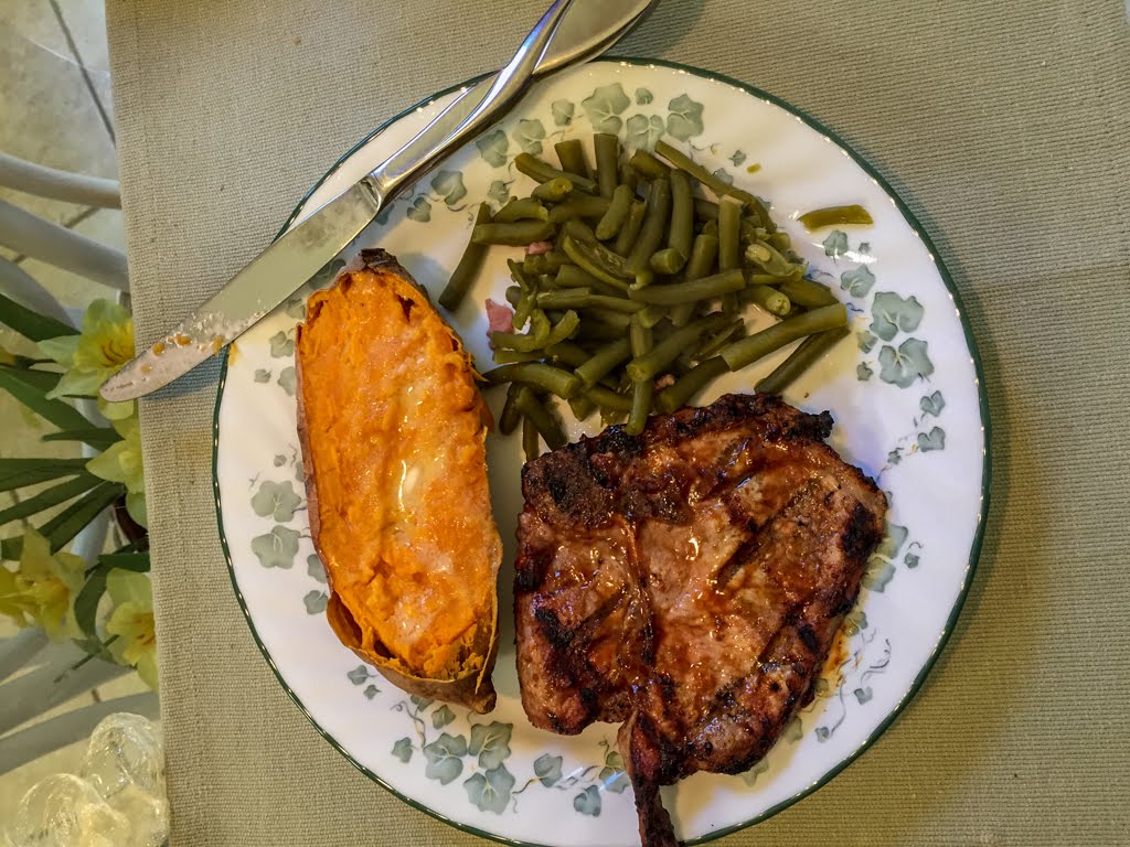 I think I mentioned my guy has a new grill. We had to get one since we sold our island home with nearly everything still in it, including the grill! Anyway, thought I'd show it and brag on his cooking a bit.