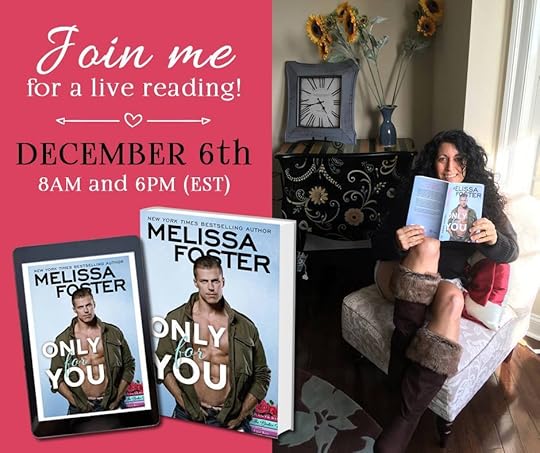 With the holidays coming up, I thought I'd give fans early notification of one of my upcoming release events! I'll be doing 2 live readings to celebrate the release of ONLY FOR YOU (Bodhi and Bridgette's love story), releasing Tues., Dec 5th.
