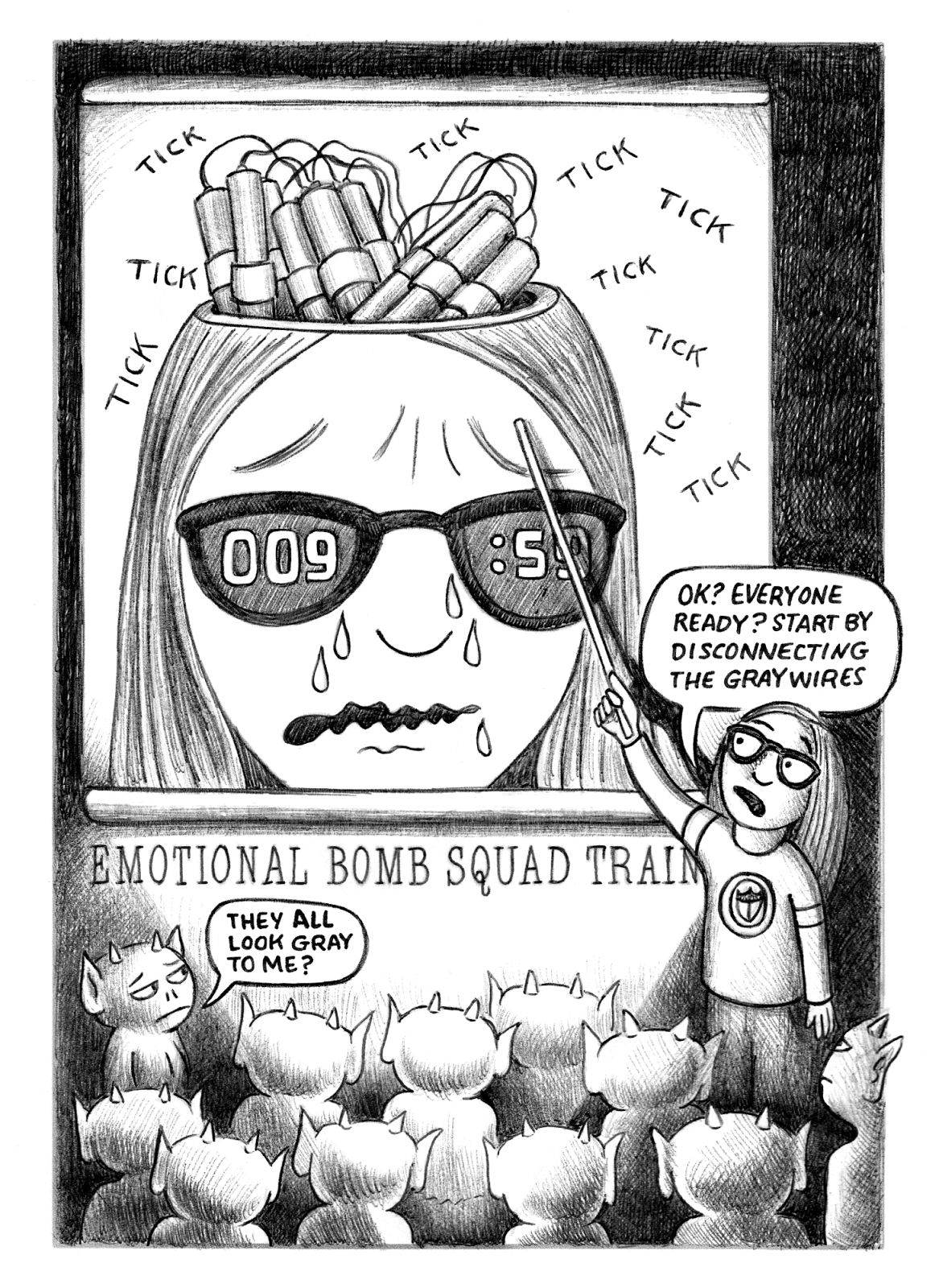 During a summer program with Alec Longstreth... on the first day of class (Monday) we were given the assignment: Create an 8 page comic, inked, and printed, due Friday morning.
