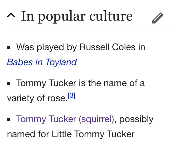 After World War II, Tommy settled down and married another squirrel named Buzzy. But unfortunately, Tommy died in 1949. Whoever wrote the Wikipedia article seems to suspect foul play, saying he ostensibly died of a heart attack due to old age, then pointing out that squirrels usually live for more than ten years in captivity. Was it murder? Did Buzzy do it? Or did the spirit of Tommy Tucker appear to him in the dead of night, this time not wailing for his bread, but for the soul of the squirrel who stole his name?
