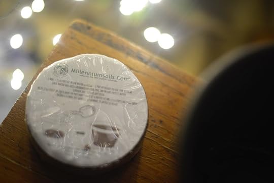 Littlest Girl pours the water into the pot, showering the 1 inch dirt puck in a bit of showering rain— and we wait for the soil to swell.
