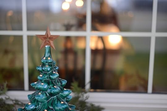 There on the front porch window, sitting atop what was the starless, thrifted ceramic Christmas tree out on the front porch — there’s now a little carved wooden star.