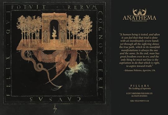“The Scalding of Sapientia is a compendium of personal operations, insights, viewpoints, journal entries and excerpts, detailed compilations and interpretations, notable turning points in ones occult journey, and specifically, the zeniths and nadirs one can experience when undertaking such a colossal mission that may come with realizations that may either make or break ones persona in the Cosmogony of the Possible.”