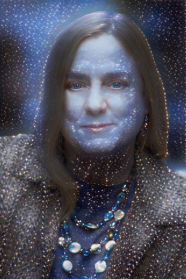 LunaPic, a place that enabled me to convert my color snaps to black and white. LunaPic is a free online photo editor and it allows you to do all kinds of snazzy things with your photos. They have a filter called "space" that I'm especially fond of. It enabled me to change my fairly boring head shot into this.