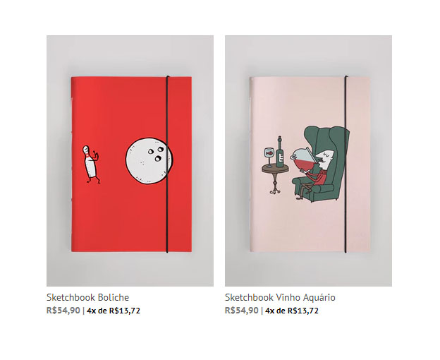 Que tal produtos com as minhas estampas? Dá uma olhada no site do Chico Rei e confira a minha coleção: tem camisetas, canecas, sketchbooks e um monte de coisas bacanas.