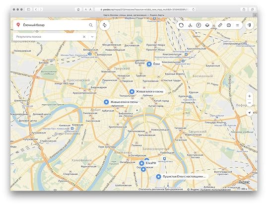 Но наступил Новый, мать его за ногу, год. И тут что-то переклинило. И впервые за тысячелетнюю историю города не открыли в центре города елочных базаров! Это пиздец! Я, как житель центра, просто охуел. Раньше я шел на любую более или менее крупную площадь или бульвар - и там был елочный базар. В этом году в пределах Садового кольца есть три елочных базара. Как будто это не Москва, а пригород Улан-Батора, блять.